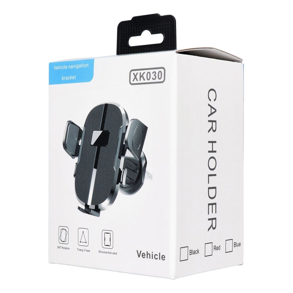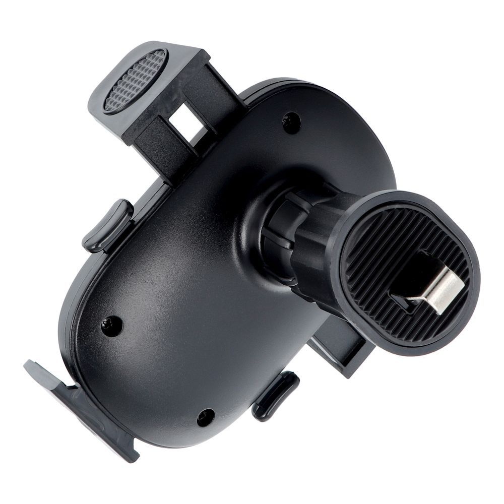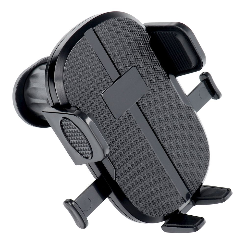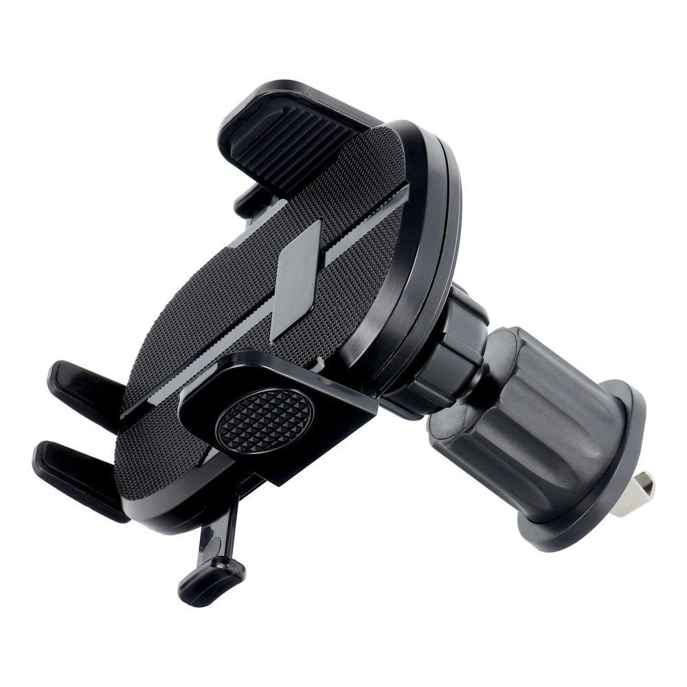 The holder is mounted to the inlet grille. The clamps securely hold the smartphone in the holder. It has a cutout for the charging port, which allows you to connect the charger even while driving.