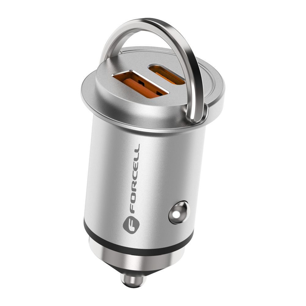 Forcell F-Energy Mini is distinguished by its small size, which allows the charger to be elegantly placed in a car cigarette lighter socket. This makes it discreet and does not disturb the aesthetics of the car's interior, being always ready for use. Moreover, the ring-pull at the top lets you easily carry it.